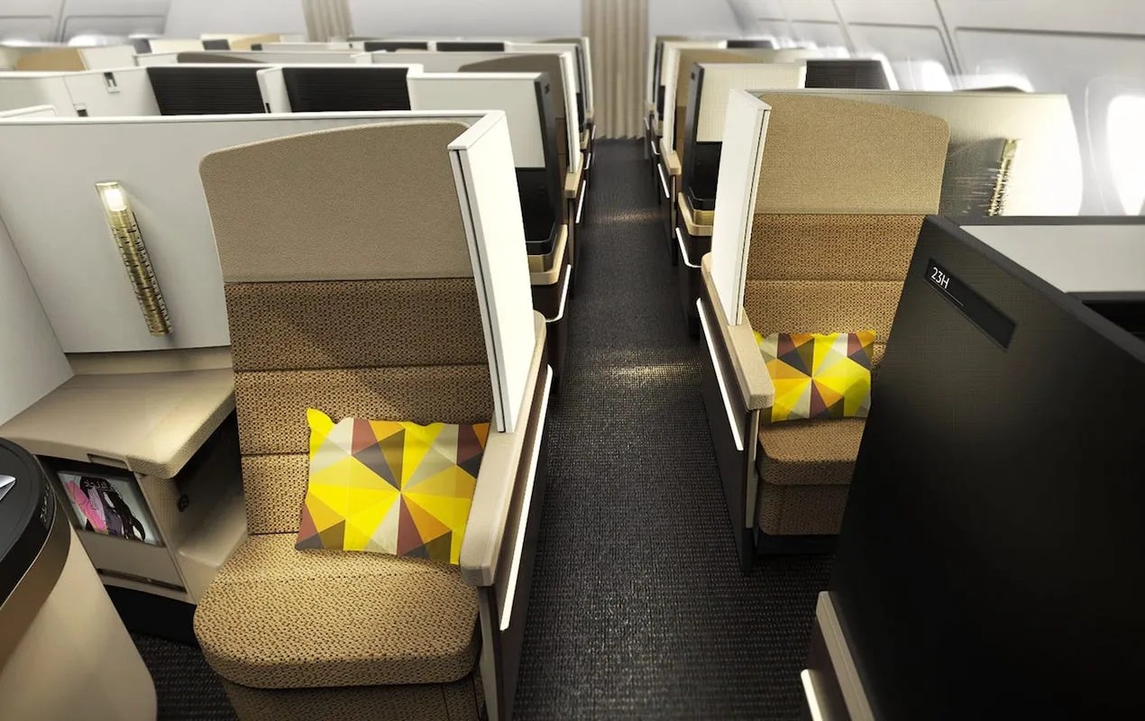 https://www.instagram.com/p/B1THPs_IWth/Etihad Airways Business Class cabin is surprising. Interior design is based on dark and wooden colors, which I like and makes the 1-2-1 configuration very exclusive and modern. On top of that, a cozy lounge space is available at the front of the cabin, perfect for casual or business discussions.