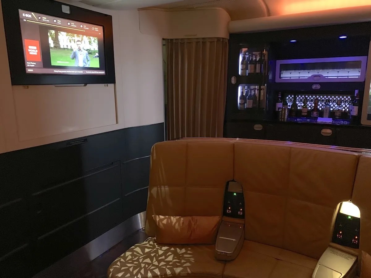 I boarded ahead of time through autonomous gantries, probably 5 to 10 minutes before Economy passengers. It was fast and smooth ; I arrived to my seat at the A380’s upper floor in a flash.