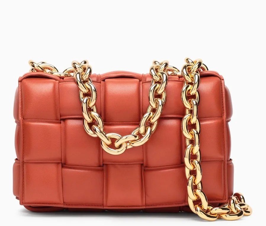 Unlined and handwoven by Italian artisans using strips of padded, double-face lambskin leather, this bag is further elevated with a duo of chunky chain straps that are assembled and polished by master jewelers.