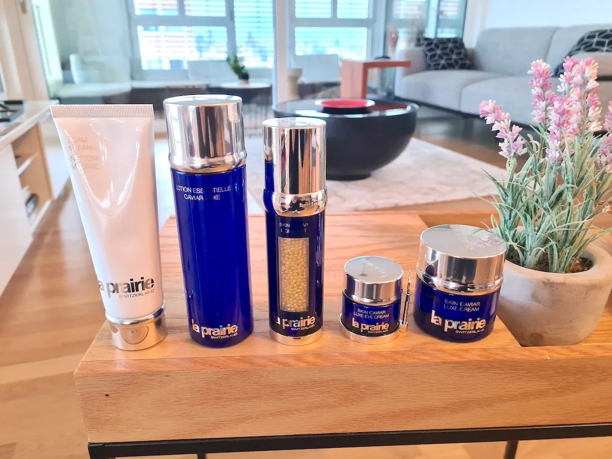 There are many different products in that Skin Caviar collection. As a good start, my recommendation is to go with the lotion, the serum, the eye cream and the face cream. You can also add the La Prairie foam cleanser for better results. The right sequence to follow, in the morning, is the following: