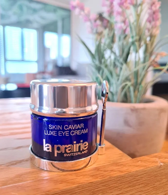- Moisturize the eye area with La Prairie Skin Caviar Luxe Eye Cream